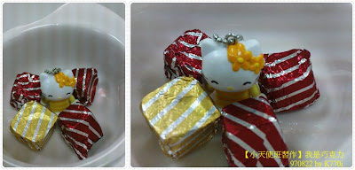 下午老師電話中跟我說,亮亮做完巧克力第一個想要分享的就是爸爸,由此可證明,心果然是偏的;下班後去接兒子,差點忘了把巧克力帶回家,一從老師手中接過巧克力後,老師問亮亮要怎麼分?小小的手指著透明塑膠袋內的四顆巧克力一一的點名”這顆給爸爸、這顆給亮亮、這顆給奶奶、這顆給姑姑” ”咦?!那亮亮這顆要給媽媽嗎?” 標準答案“不要!!”嗚~這時候的畫面是周圍一片黑只有從我頭頂打下來燈光,媽媽我摀著心跌坐在地上說”挖無甘啦~”